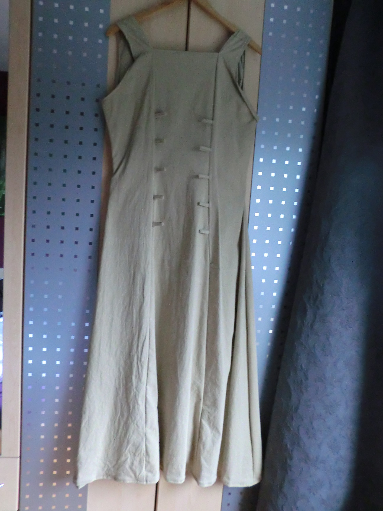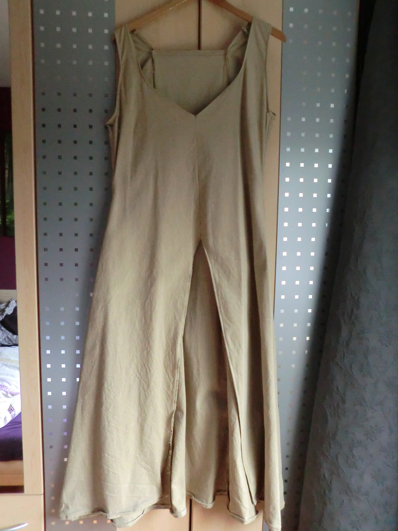 ich würde gerne ein beiges Überkleid verschenken, was ich in meinen Nähanfängen mal aus Lenda (dicke IKEA-Baumwolle) genäht habe. Es passt mir nicht richtig, aber ich tue mich schwer, es wieder auseinanderzuschneiden. Bevor ich es daher als Stoffreste wiederverwerte, wollte ich mal nachfragen, ob jemand vielleicht etwas mit dem Kleid anfangen kann.
