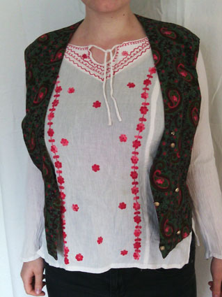 Leonie möchte eine Bluse und eine Weste loswerden, die gut zu fahrendem Volk, Hobbitse und anderen bunt und gemütlich gekleideten Leuten passen.