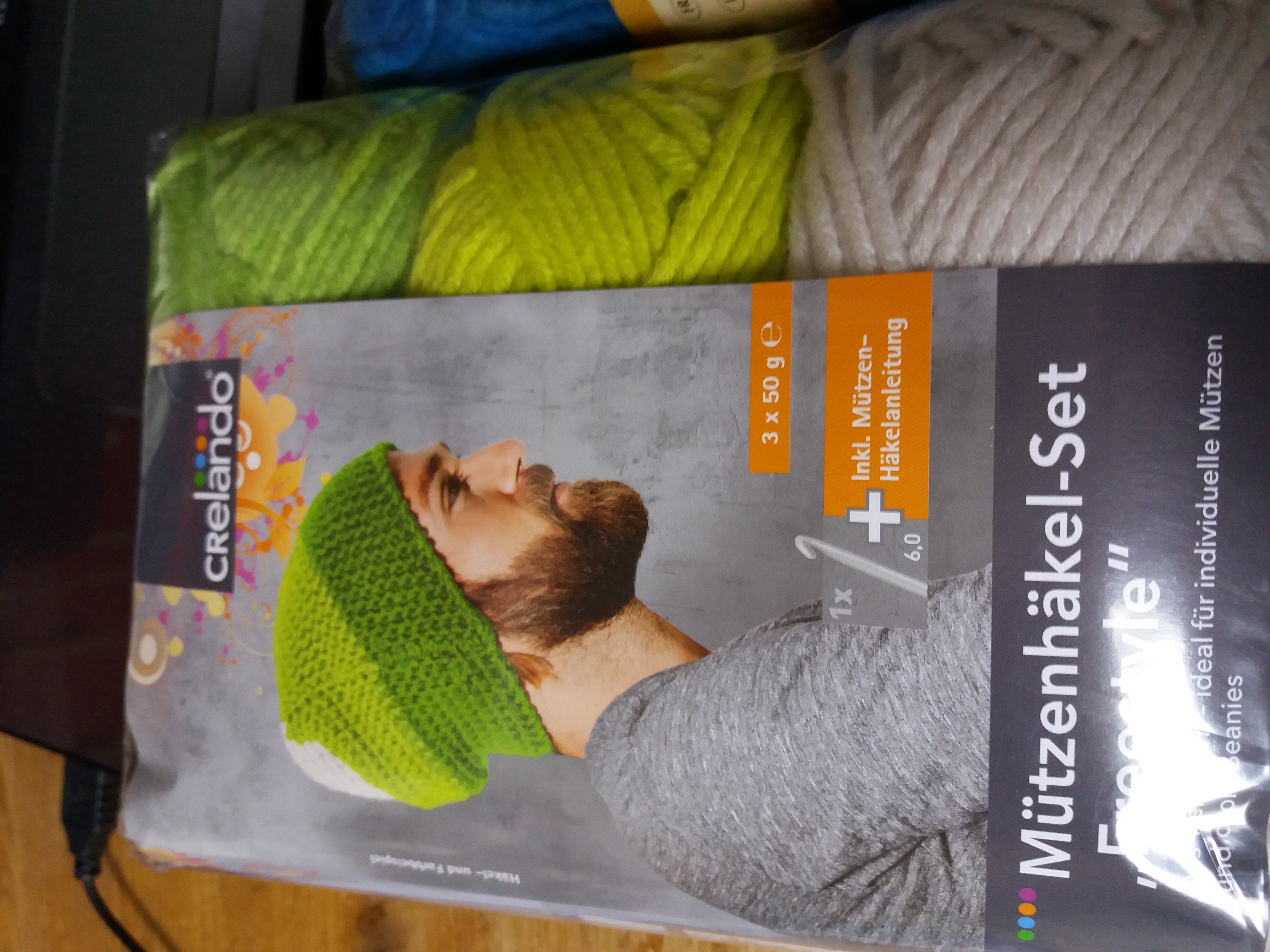 Einmal Häkelset Mütze grün - 3 x 50g 70% Polyacryl / 30% Schurwolle